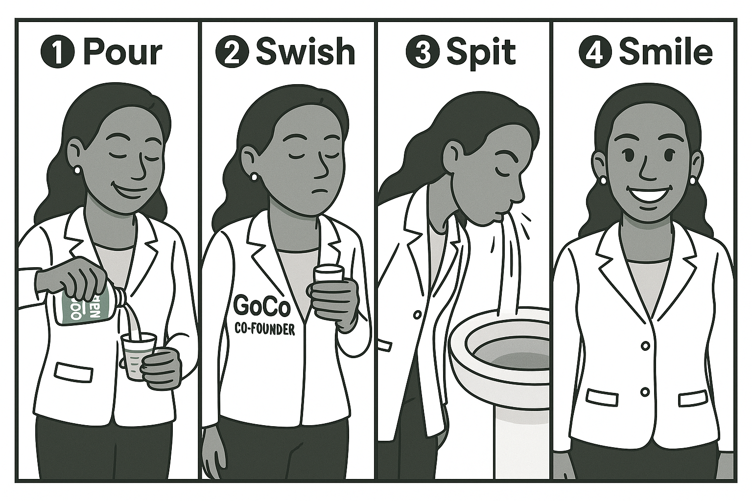 Enjoy a simple and effective daily oral cleanse whether you're at home or on the move. Follow the steps below for a complete mouth detox using either our convenient pouches or bottles.